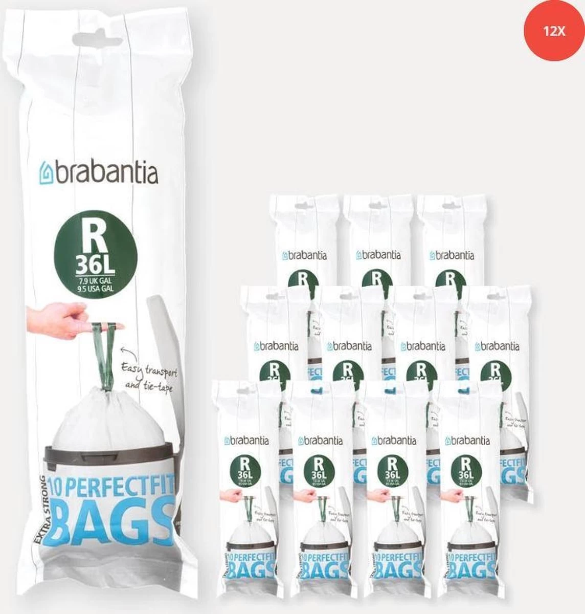 Brabantia PerfectFit Vuilniszakken – 36 L – Code R – 12 Rollen X 10 Stuks