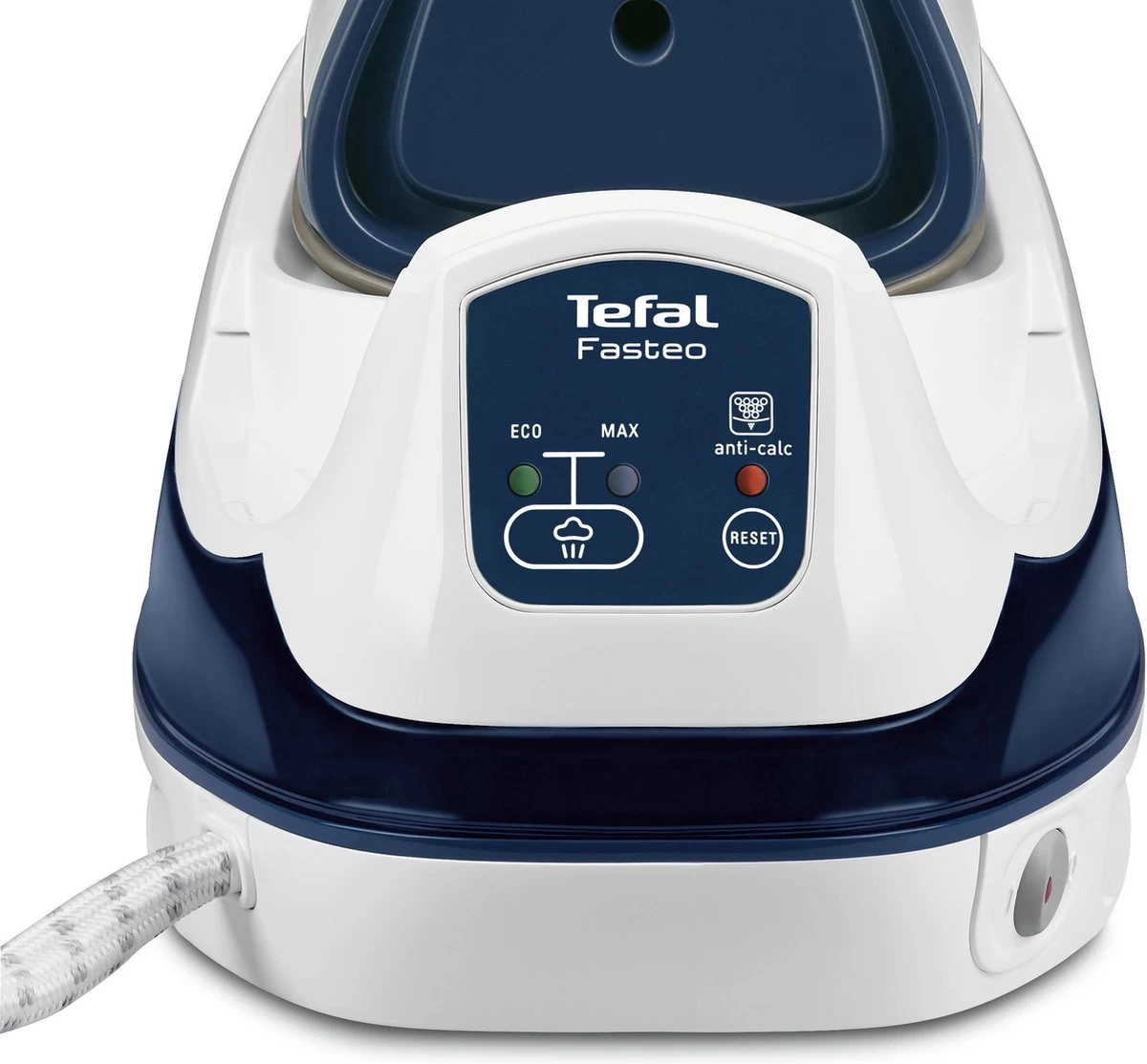De Tefal Fasteo SV6040 Stoomgenerator is gebruiksklaar in 2 minuten en heeft een XL waterreservoir om constant bijvullen te voorkomen en aan één stuk door te kunnen strijken.